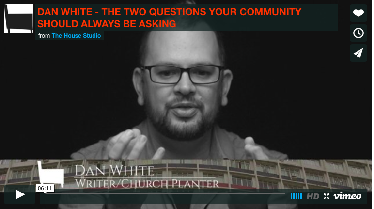 Are you heading to Inhabit Conference? Be sure to say hi to JR Woodward and Dan White, Jr.Hear's a taste of what you'll get at their talk "Subterranean: a relational rhythm for submerging into the neighborhood."DAN WHITE - THE TWO QUESTIONS YOUR COMMUNITY SHOULD ALWAYS BE ASKING from The House Studio on Vimeo.